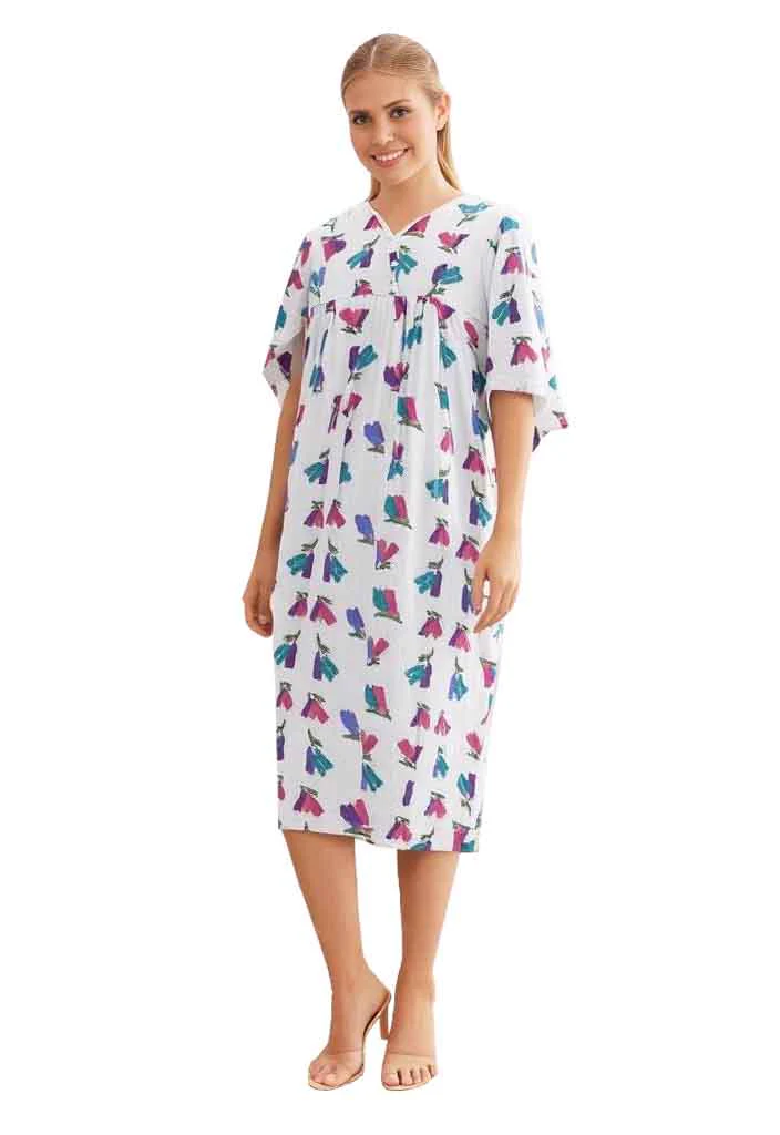 MATERNITY FLORAL RED/GREEN/BLUE PRINTED PATIENT GOWN